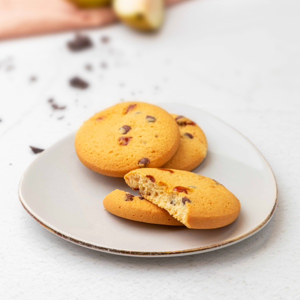 Twee grote Italiaanse koekjes met de smaak van chocolade en peer: een heerlijke combinatie! Genieten maar.