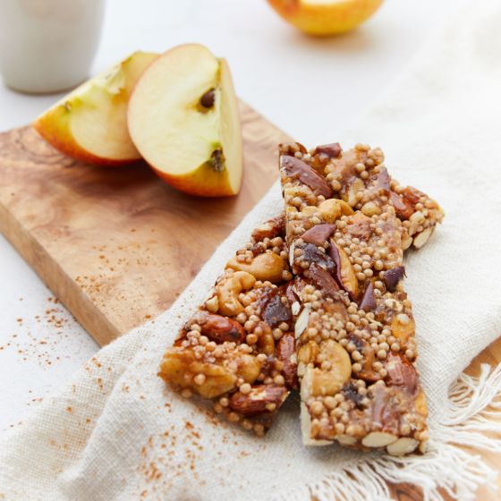 Ben jij gek op de combinatie appel en kaneel? Dan is deze reep zeker iets voor jou! Een heerlijk tussendoortje met knapperige noten en een zoete twist van appel.
